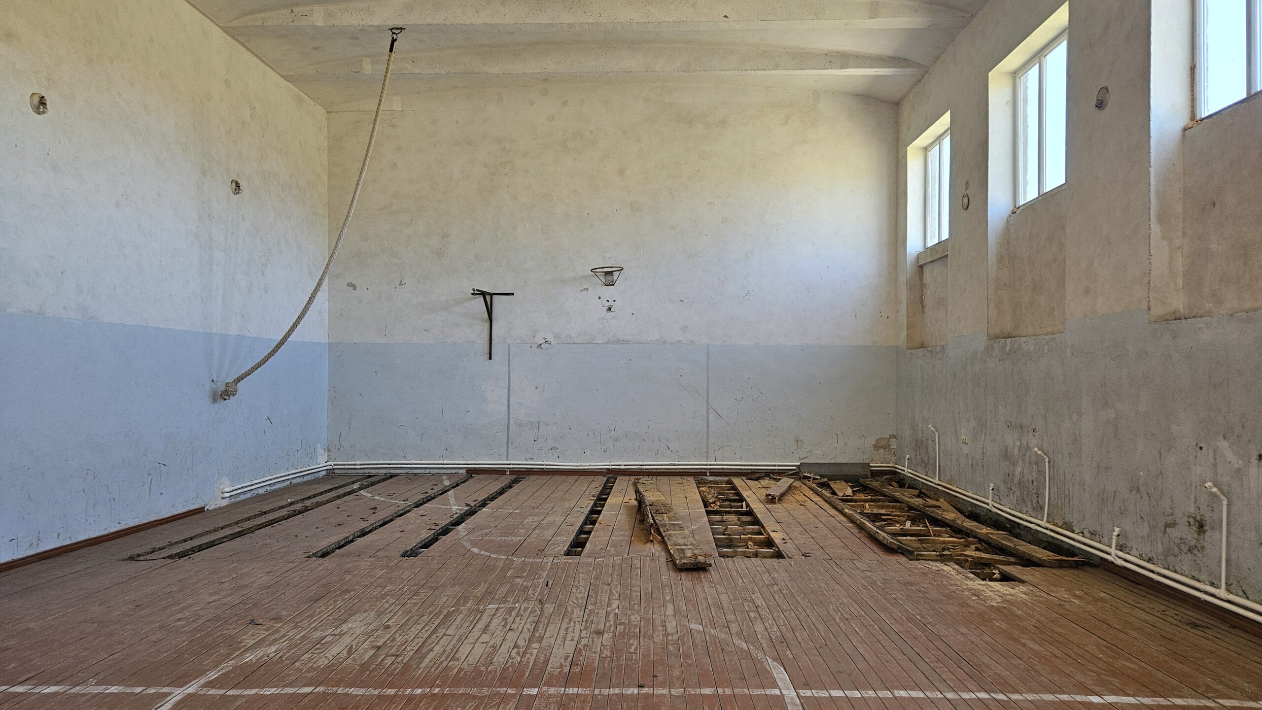 Established in 1975, the Shgharshik Secondary School has been educating the town’s children for many years and currently services 60 students. The gymnasium at the school has heating, but is run down and is in need of renovations. Currently, students cannot utilize the gym in its entirety because of the fact that the existing wood flooring is rotten and unsafe to walk on in many areas. To make the gym safe and usable again, we will add two new windows that open to improve ventilation, install new electrical and lighting, replace the rotting wooden flooring with vinyl, add new basketball backboards, install new netting over the windows, add new benches, and repair the walls by fixing the moisture problems from outside and then painting and sealing the walls.Â