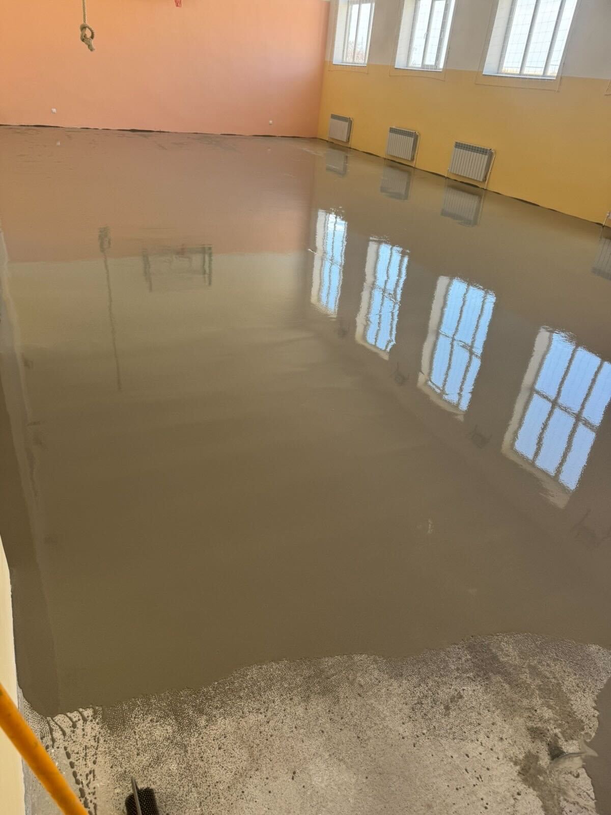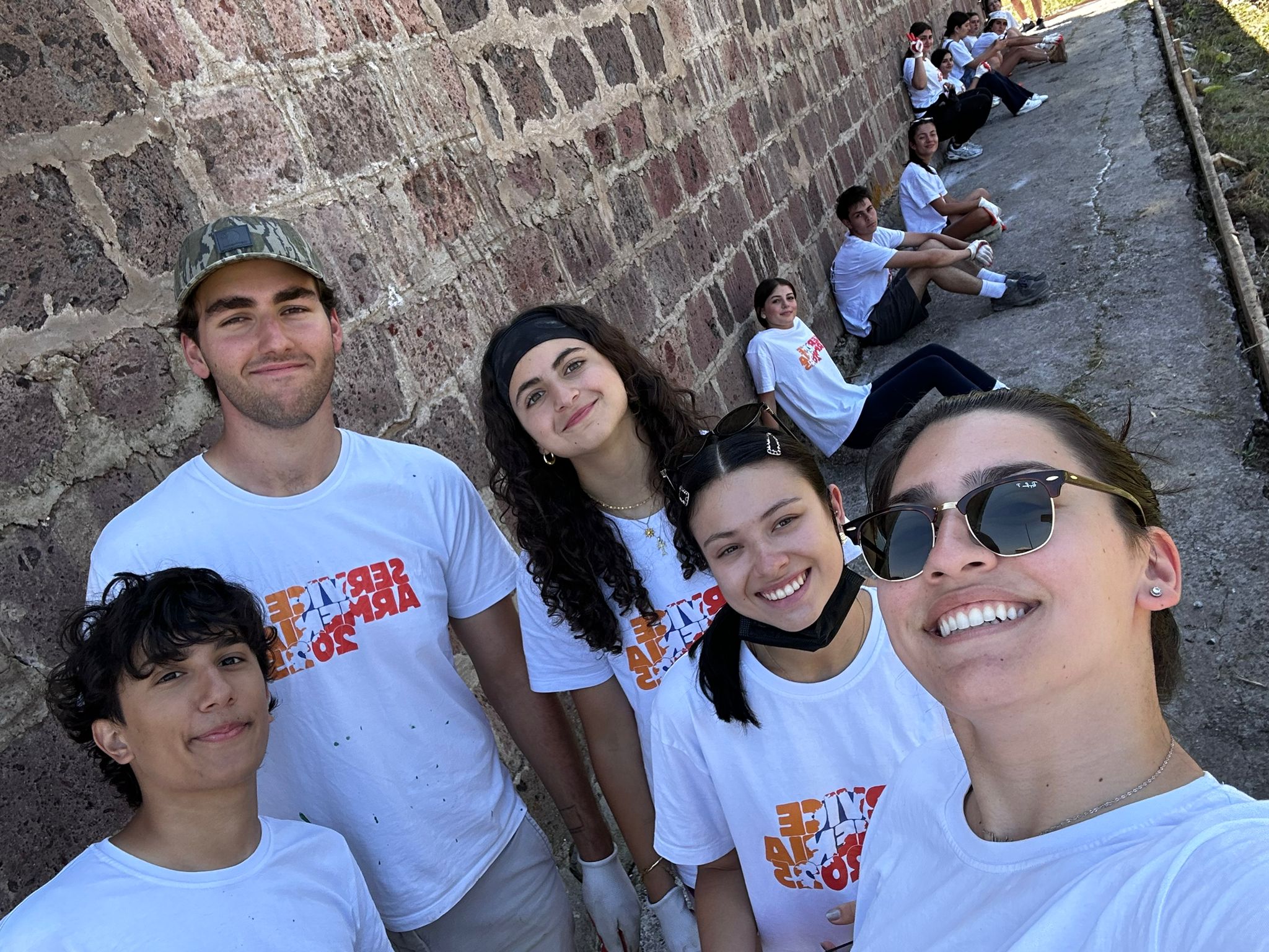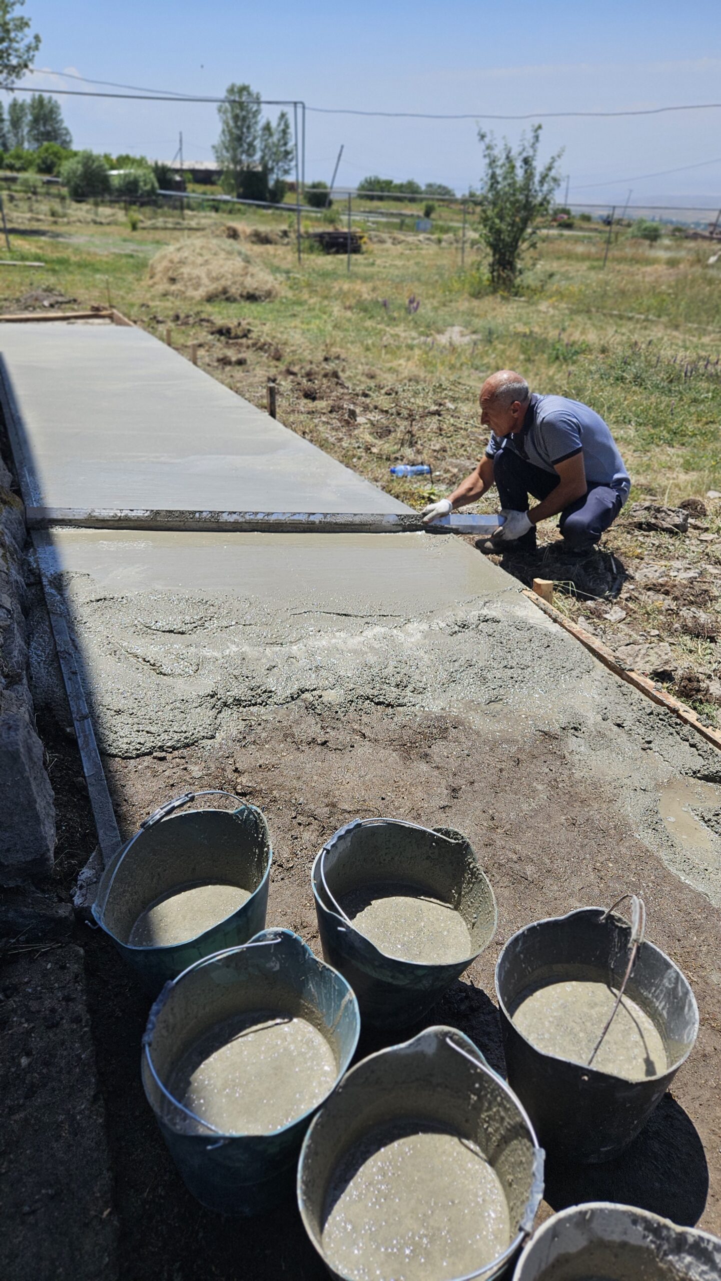 SERVICE Armenia 2025 participants spend the afternoon working hard to mix and poor cement to pave the outer walkway around the Shgharshik gym. This walkway also serves as a preventative measure for water intrusion.Â